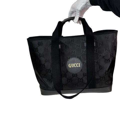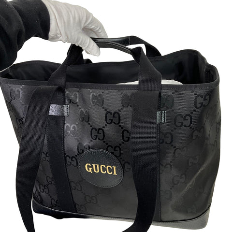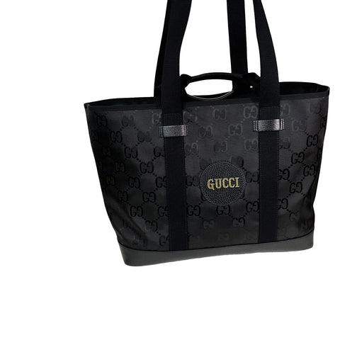 Features Make a bold statement while embracing sustainability with the Gucci Off The Grid Medium Tote. Designed with the modern, eco-conscious individual in mind, this tote balances luxury and responsibility without compromising style. Chic and Versatile*: The sleek black nylon exterior lends a refined touch, making it the perfect accessory for any occasion—whether you’re heading to the office or enjoying a day out. Sustainable Fashion*: Crafted from recycled materials, the Off The Grid collection embodies Gucci's commitment to environmental responsibility, allowing you to showcase your style while supporting a greener planet. Spacious and Practical*: With ample room to hold your everyday essentials, this medium tote features a thoughtfully designed interior, making it both functional and fashionable. Signature Gucci Aesthetic*: Iconic elements, including the distinctive Gucci logo and minimalist design, ensure you stand out while staying effortlessly chic. Don’t miss your chance to own this exquisite piece! Enhance your wardrobe with a tote that reflects your values and taste. Invest in style and sustainability with the Gucci Off The Grid Medium Tote—where luxury meets conscious living.